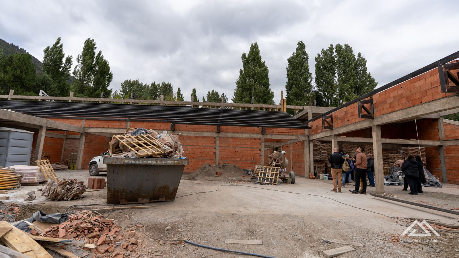 Durante la recorrida se observó el avance de la obra, cuya estructura está próxima a recibir el techo para luego permitir los trabajos en el interior. El edificio tendrá accesibilidad y contará con paneles solares de funcionamiento diario.