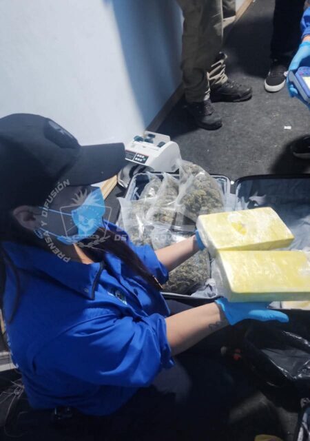 Efectivos de la Dirección Seguridad Lagos del Sur, la División Brigada de Investigaciones Zona Sur, el GEOP Junín de los Andes y la División Antinarcóticos Zona Sur irrumpieron en el domicilio y secuestraron 9,7 kilos de droga: aproximadamente 4,9 kilos de clorhidrato de cocaína y 4,8 kilos de cannabis sativa (marihuana). El valor estimado de esta sustancia en el mercado ilegal supera los 350 millones de pesos.