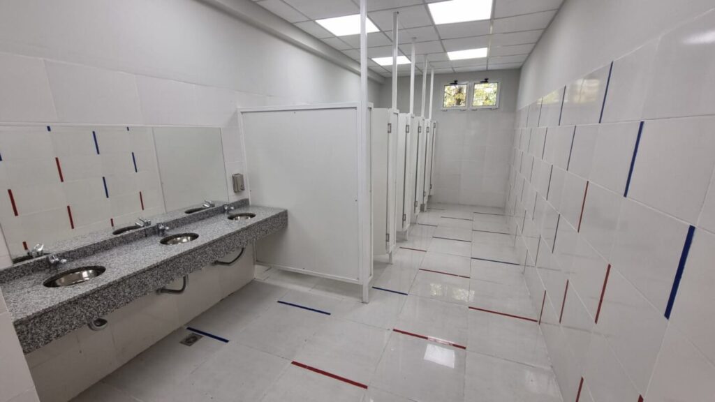 Los funcionarios también recorrieron la Escuela Especial N° 9 Ruca Antú, donde avanzan las obras de nuevos sanitarios accesibles, la ampliación de espacios y la instalación de juegos con piso blando en el patio, mejorando notablemente la infraestructura y la seguridad de los alumnos.