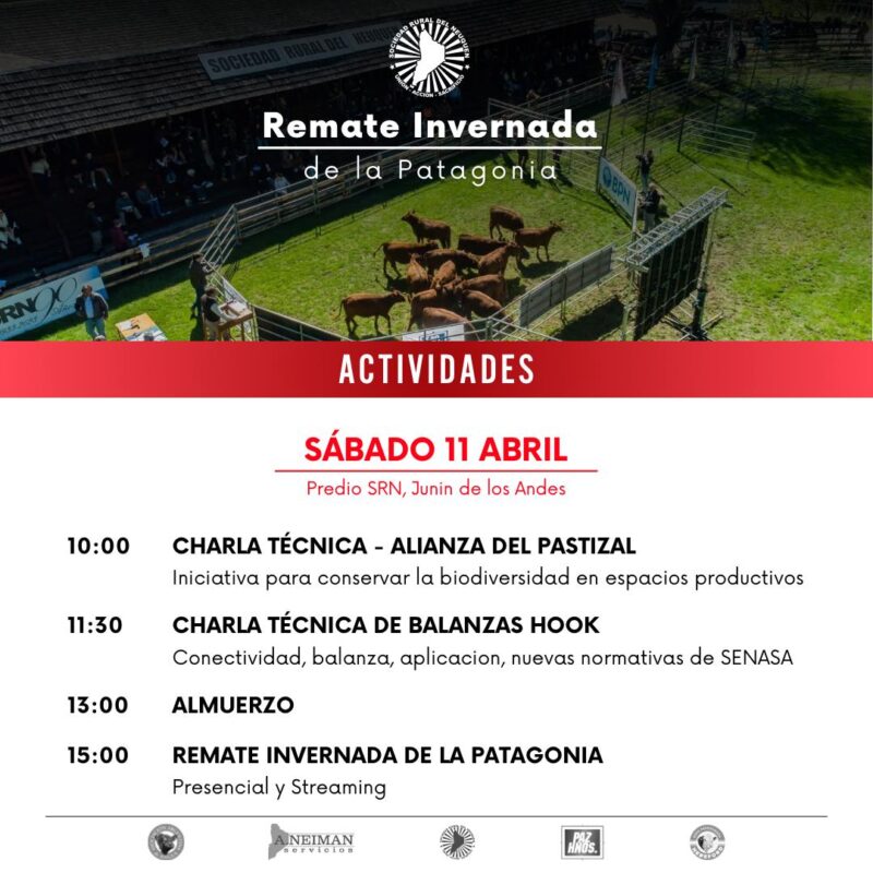 Junín de los Andes.- El próximo sábado 11 de abril, el predio de la Sociedad Rural del Neuquén (SRN) en Junín de los Andes será escenario de una nueva edición del Remate de Invernada de la Patagonia, uno de los encuentros ganaderos más importantes de la región.