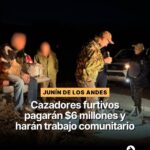 Junín de los Andes.- Dos cazadores furtivos que fueron sorprendidos transportando la cabeza de un ciervo de 16 puntas en las inmediaciones de Junín de los Andes deberán pagar $6 millones destinados a instituciones de la comunidad y cumplir horas de trabajo comunitario, según un acuerdo de reparación aprobado por la Justicia.