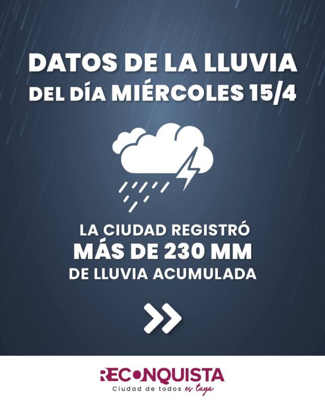 Reconquista vivió en la madrugada de este miércoles 15 de abril un temporal histórico que superó ampliamente las previsiones. Mientras se esperaba alrededor de 60 mm, la ciudad registró más de 230 mm de lluvia acumulada en pocas horas, lo que provocó anegamientos en numerosos barrios, calles inundadas y afectaciones en viviendas.