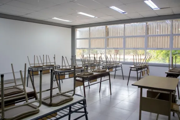 Mientras, en el exterior del predio, que es compartido con el Instituto Superior de Formación Docente N° 9 Paulo Freire, se repara el cerco perimetral con la intención de mejorar la seguridad, sin afectar el funcionamiento cotidiano de los establecimientos. “En el instituto superior se hicieron seis núcleos sanitarios nuevos y una revisión estructural completa; y se colocaron tres pórticos de soporte”, amplió Saborido. Allí también se consolidan mejoras en cielorrasos, en la cocina institucional y en el sistema de iluminación.