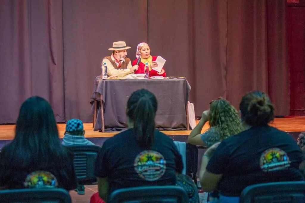 Los artistas participaron del taller de danzas neuquinas organizado por la Secretaría de las Culturas de la Municipalidad de Junín de los Andes, a cargo de Lucrecia Panzia. La actividad culminó con la presentación de su libro “Con su permiso, soy la Cueca del Norte Neuquino”, una obra que recupera el origen, la historia y las características particulares de la cueca del norte neuquino, una de las expresiones más auténticas y representativas de la identidad cultural de la provincia.