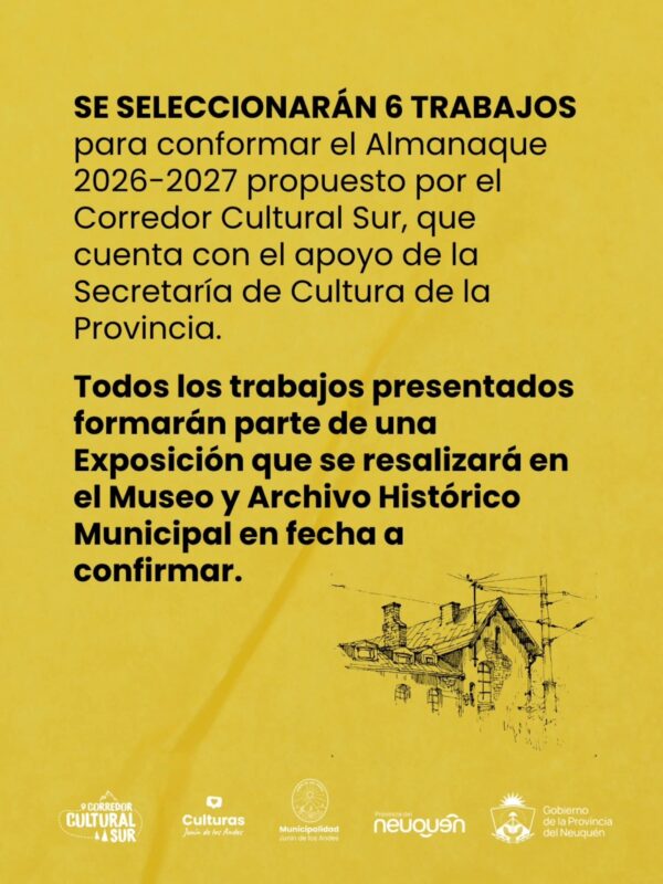 Junín de los Andes.- La ciudad de Junín de los Andes, reconocida como la más antigua de la provincia del Neuquén, vuelve a poner en valor su historia a través de una propuesta cultural que busca unir memoria, arte e identidad. Desde la Secretaría de las Culturas de la Municipalidad se lanzó una convocatoria abierta para integrar el Almanaque 2026-2027 “Patrimonio Arquitectónico del Sur Neuquino”, una iniciativa del Corredor Cultural Sur con el acompañamiento de la Secretaría de Cultura provincial.