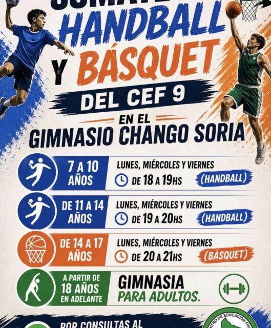 Sumate al Handball y Básquet en el CEF 9: Abiertas las inscripciones en el Gimnasio Chango Soria