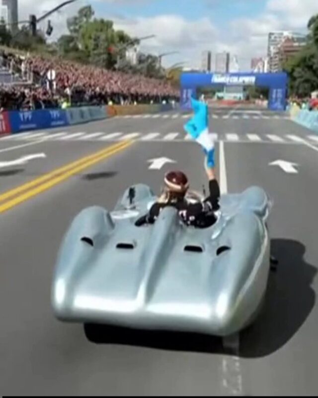 Pero el momento más emotivo y histórico de la jornada llegó cuando Colapinto tuvo el enorme honor de subirse y girar con una réplica del legendario Mercedes-Benz W196 “Flecha de Plata”, el mismo modelo con el que el mítico Juan Manuel Fangio brilló y conquistó títulos en la Fórmula 1.