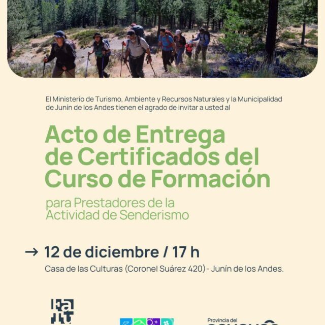 Junín de los Andes.- La ciudad de Junín de los Andes dará un nuevo e importante paso en la profesionalización de su actividad turística con la realización del Acto de Entrega de Certificados del Curso de Formación para Prestadores de […]